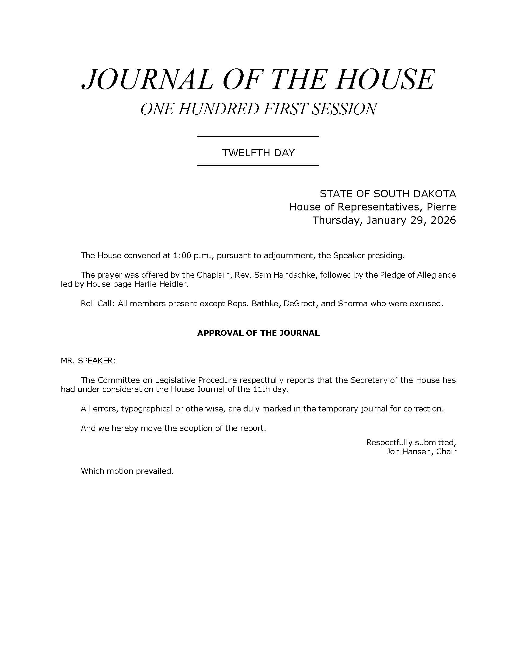 On January 29, 2026, the South Dakota House of Representatives considered Senate Concurrent Resolution 604 (SCR 604).